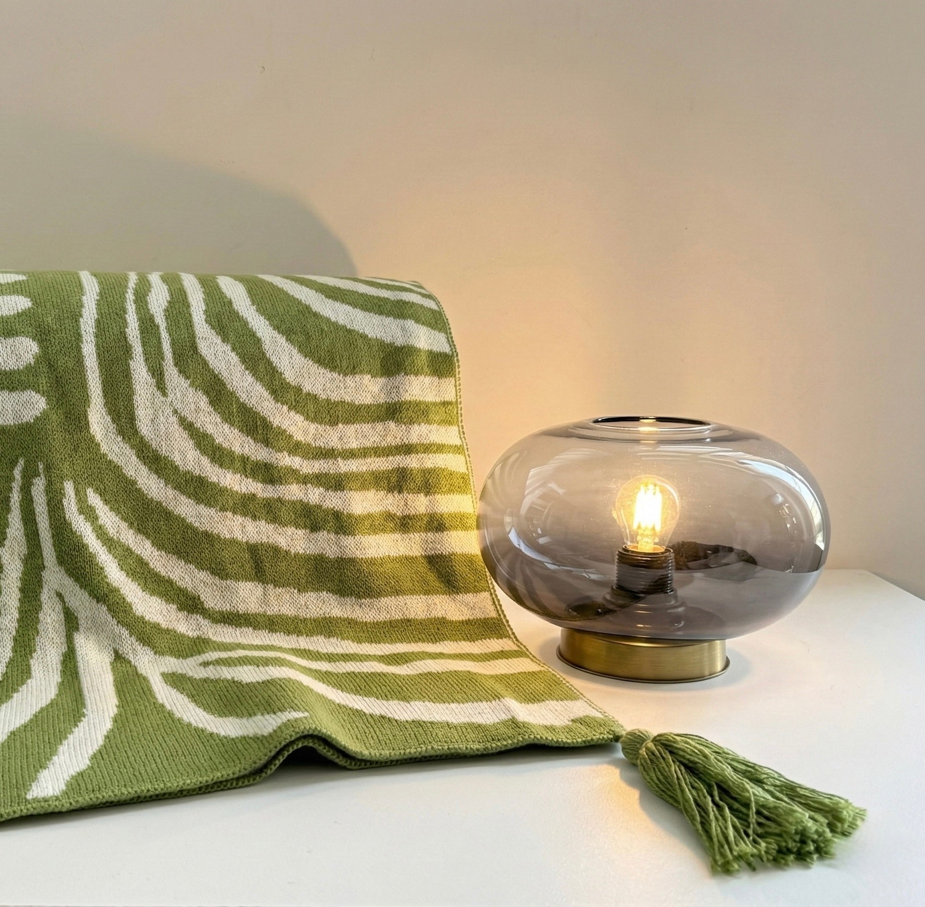 1 Lucine Table Lamp in Gradient Grey+1 Linear throw blanket